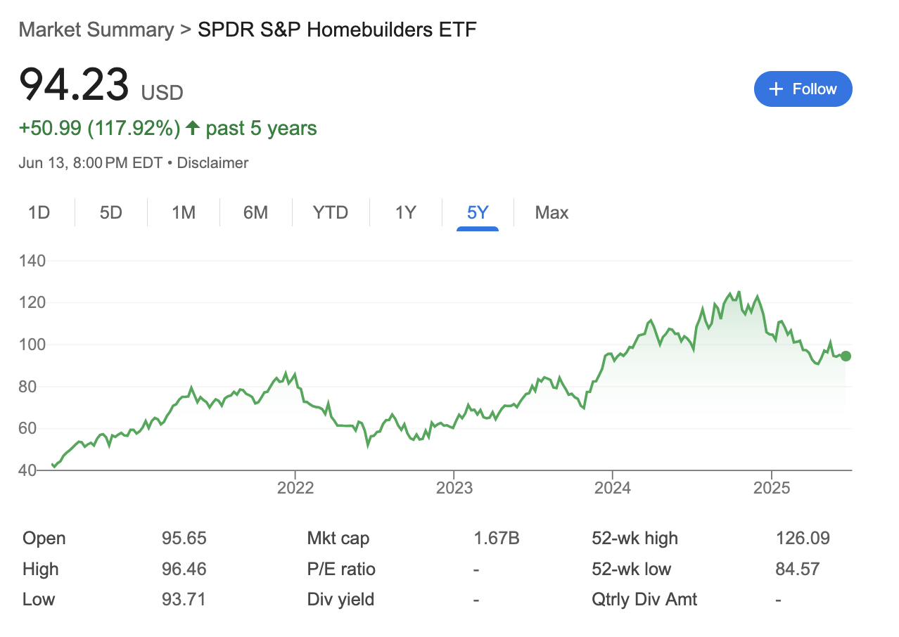 Yahoo Finance recently posted a video displaying the trend of homebuilders on the market and I thought it would be a good etf to keep an eye on.