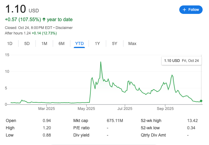 EPS is in the negative actually at -0.040 @TOP, and the stock has dropped from $15 dollars down to $1 dollar. This isn't to say the stock is at it's worst, given the past YOY performance has pumped from $0.50 to $8.11 $12.80 approx..., today it trades as low as a single dollar. The stock has lost 96.25% of it's value since IPO and price targets are MIA, but according to the interwebs and overnight gains, the stock is up 50%. For more information, check out Yahoo Finance.