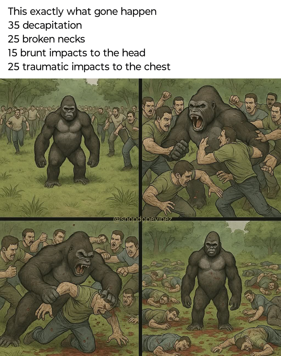 Nick Tomljenovic on Instagram: "1 Gorilla vs 100 men, who wins?"